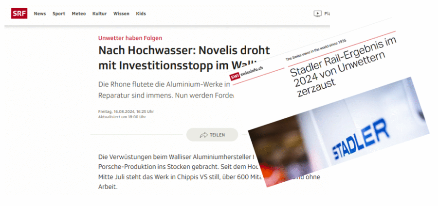 Il cambiamento climatico sta già avendo un impatto sui nostri posti di lavoro. Un esempio: le inondazioni del Vallese del 2024 hanno allagato anche l’impianto di alluminio Novelis di Sierre, interrompendo le attività per settimane. Tra l’altro, questo ha portato a una carenza di alluminio e, di conseguenza, a una riduzione dell’orario di lavoro presso Stadler Rail.